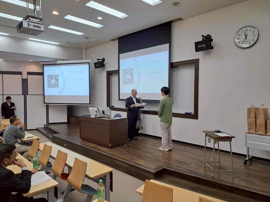 総会終了後には、同窓会事業の一環である「卒業生に対する進学・学会参加への助成」に関する助成式を執り行い、助成対象者へ目録を進呈しました。